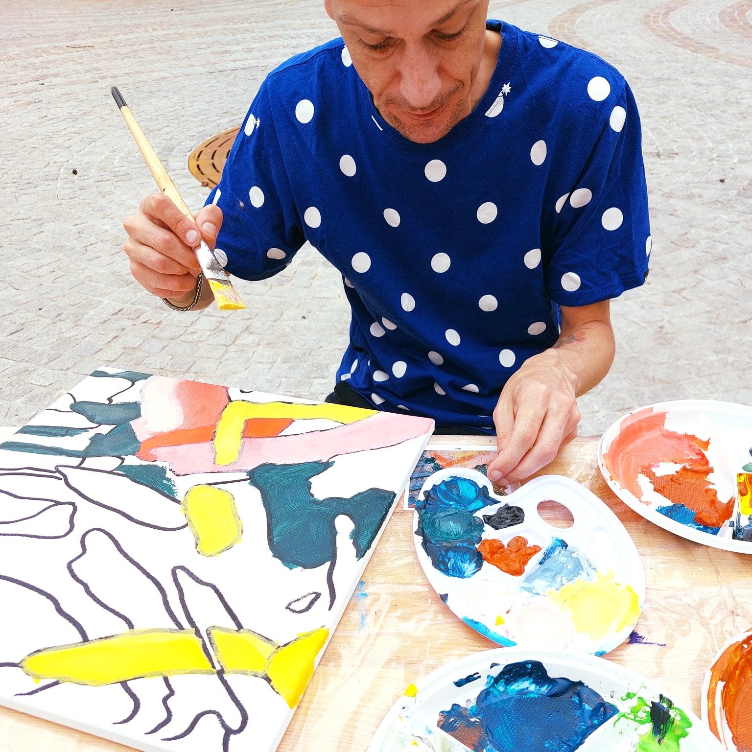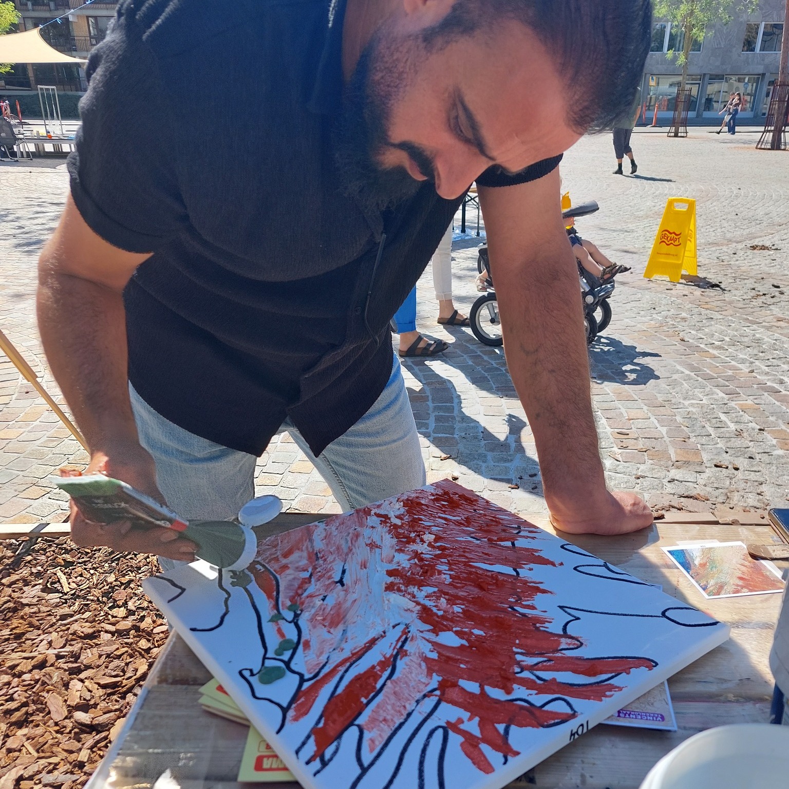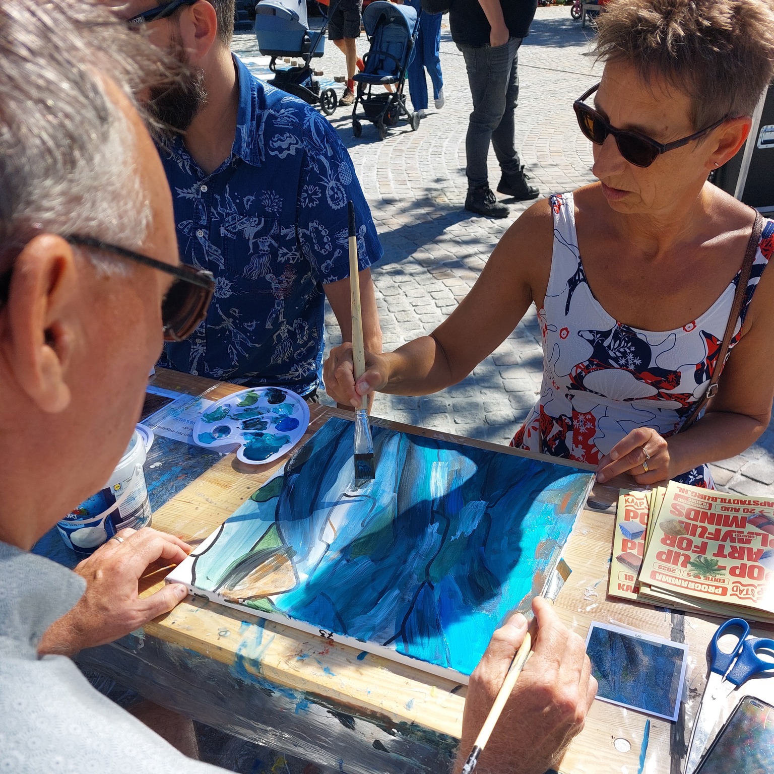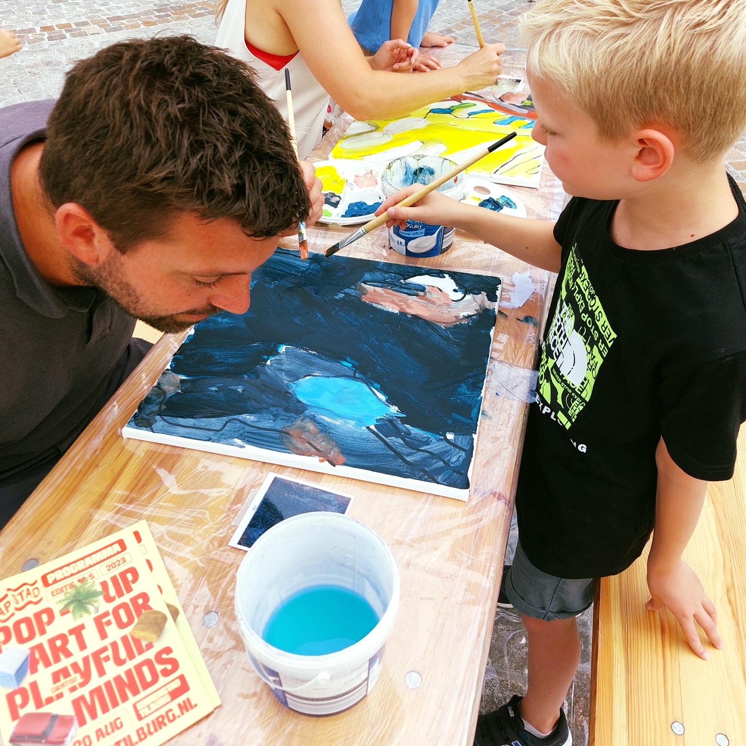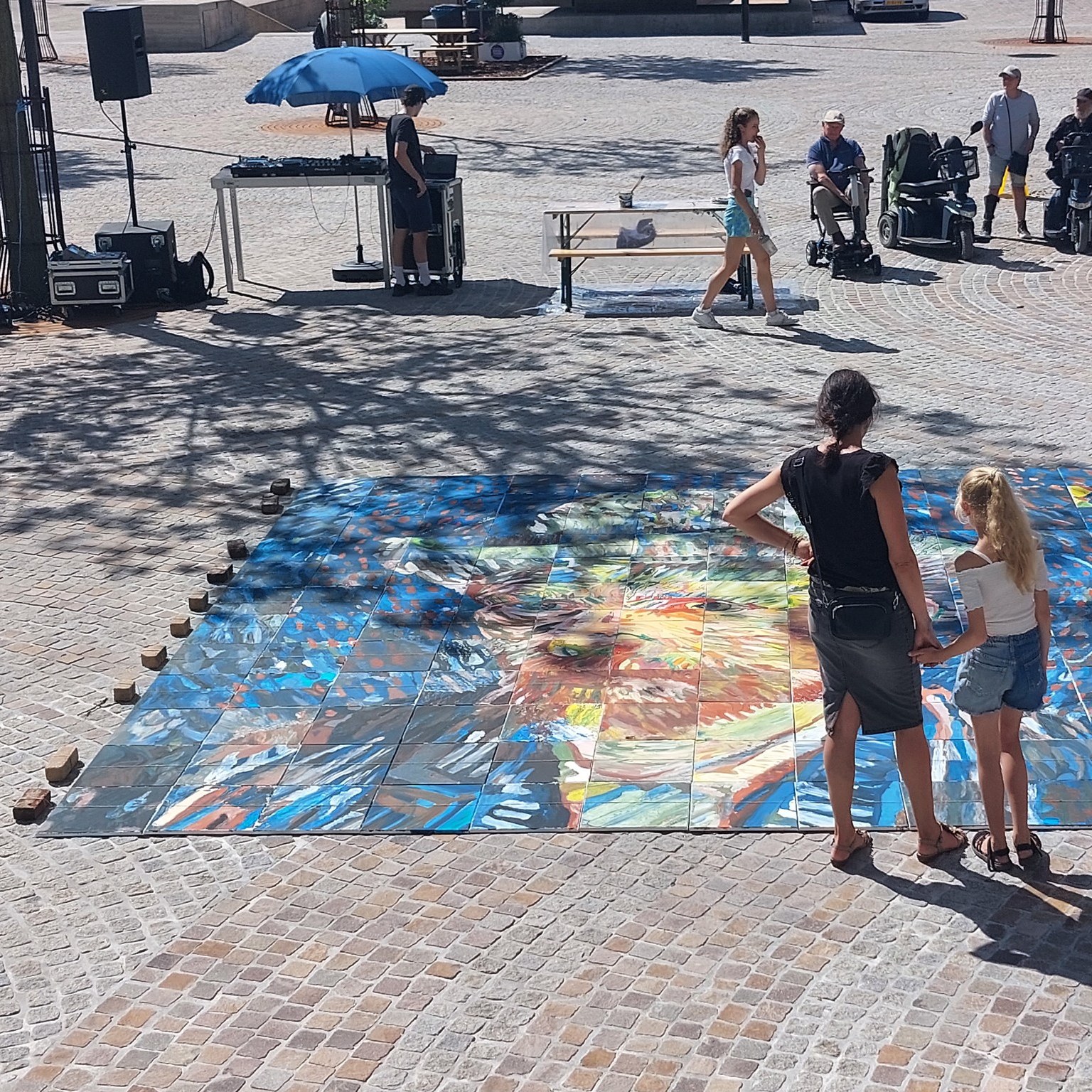 - DOEL: Stadsmuseum Tilburg, Vincents Tekenlokaal en Center of Tilburg hebben met de bezoekers tijdens Festival Kaapstad op het Willemsplein een megaportret geschilderd van Vincent van Gogh. De 144 canvas doekjes waren al voorbereid en alle spullen stonden klaar. Iedereen die kwam helpen mocht gebruik maken van een schortje tegen vlekken, kwasten, een mengbordje, water en natuurlijk verf. Veel mensen waren nodig om samen te schilderen aan deze grote uitdaging!